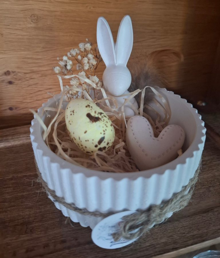 Geriffelte Schale mit Ei, Herz und Hase