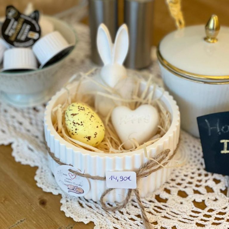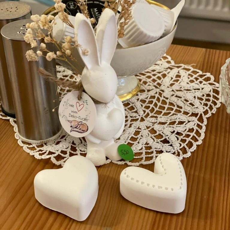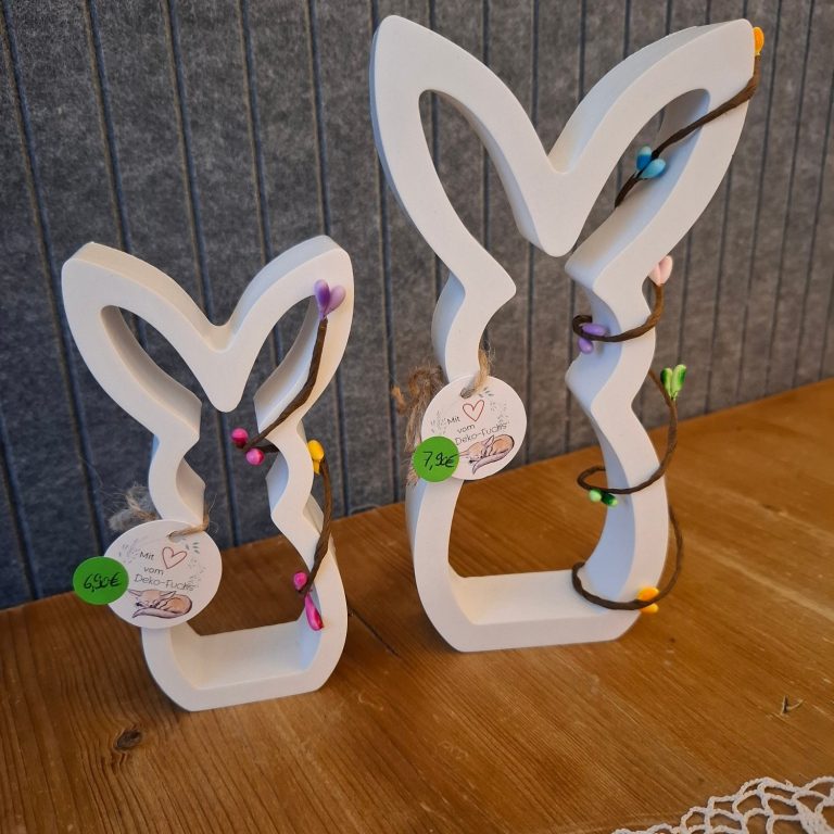 Hinweis: Die Dekoration an den Hasen kann variieren (z.B. Trockenblumen oder Zweige). Details können gerne vorher abgestimmt werden.
