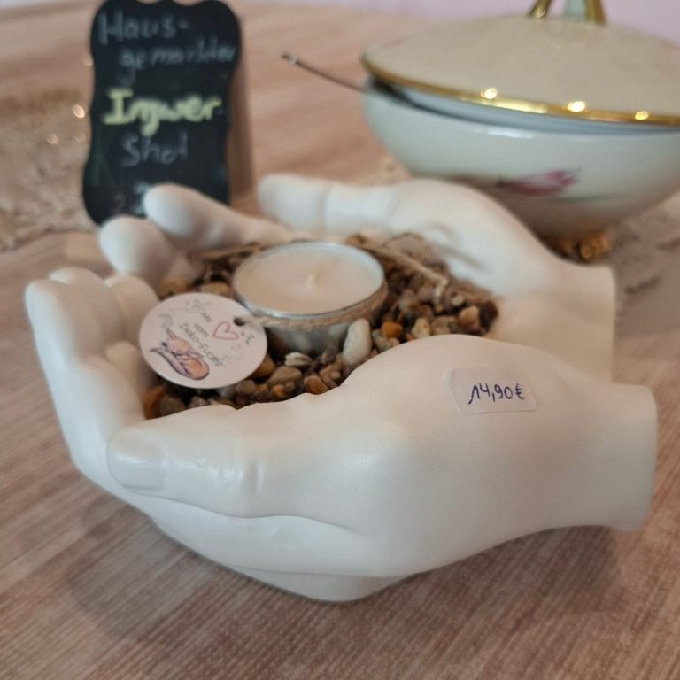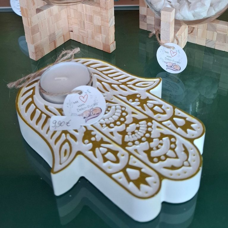 Schutzhand mit goldenen Akzenten und integriertem Teelicht