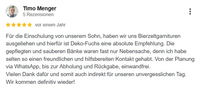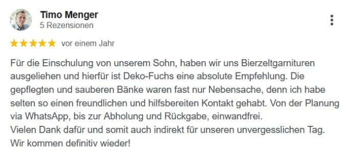 Das sagen meine Kunden über Deko-Fuchs - Echte GOOGLE Bewertungen.